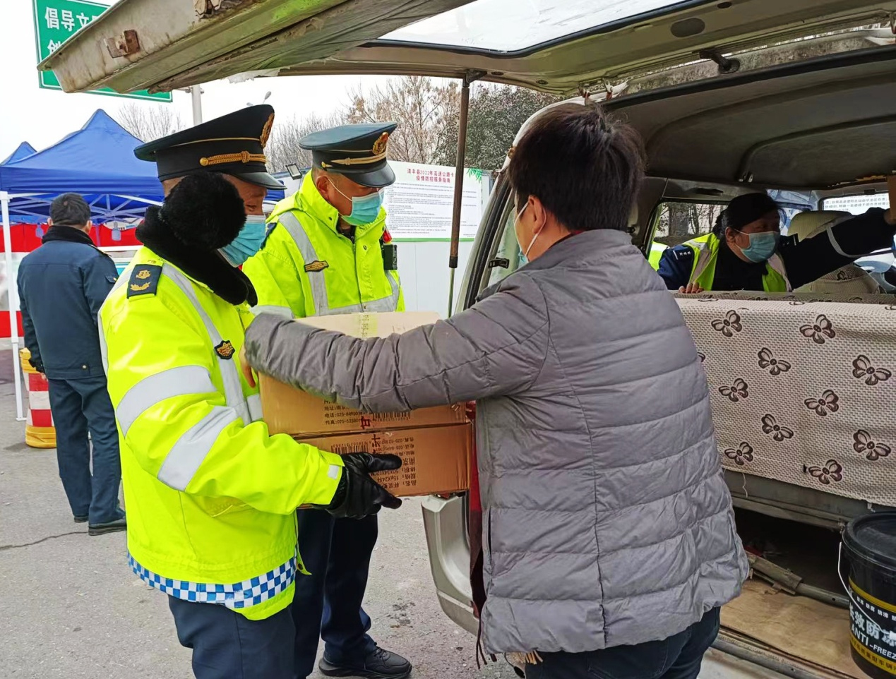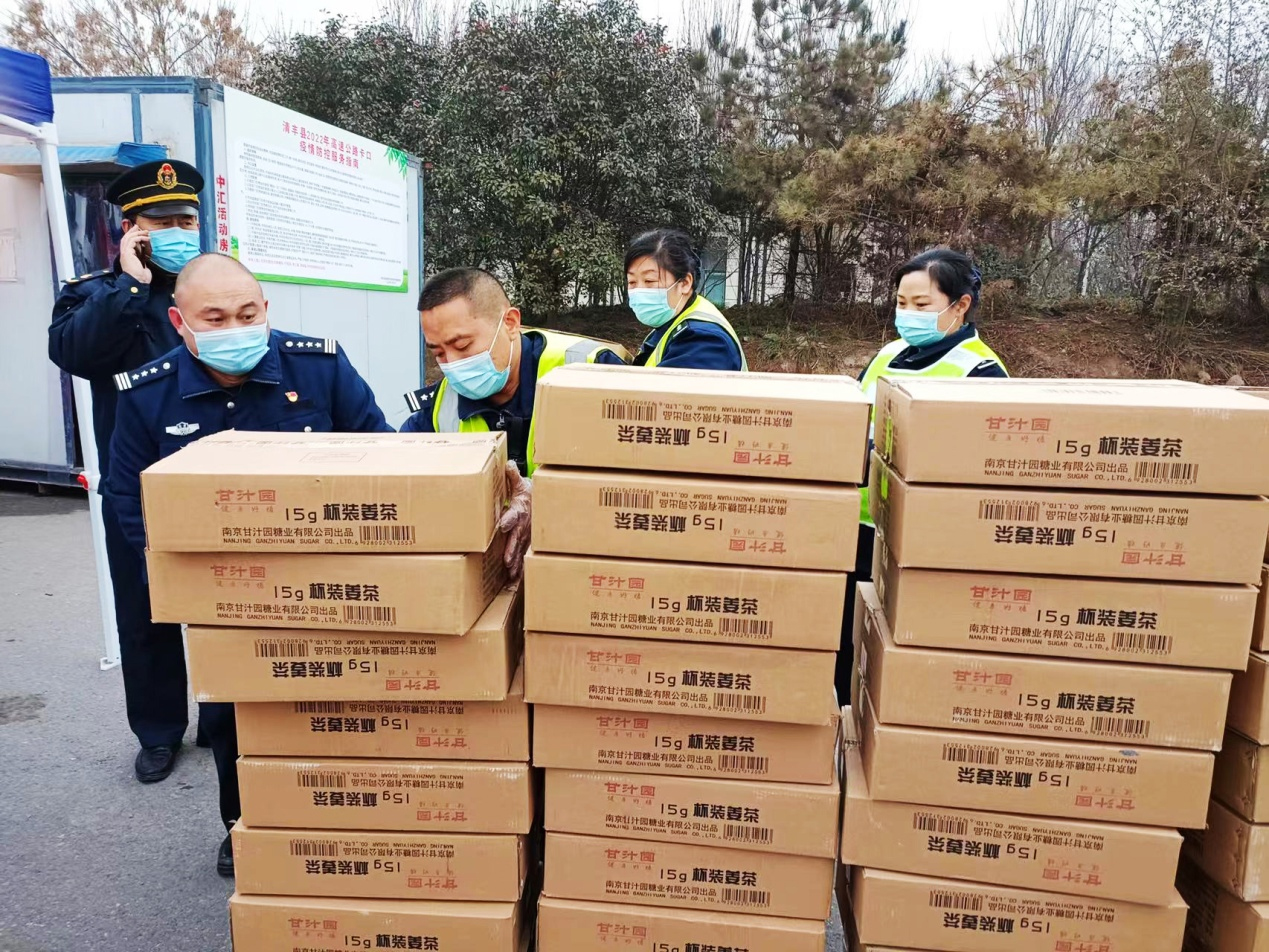 收费站的工作人员和交警在寒冷中突然收到这份温暖而甜美的礼品,喜出望外,纷纷竖起大拇指,夸赞甘汁园的爱心善行。