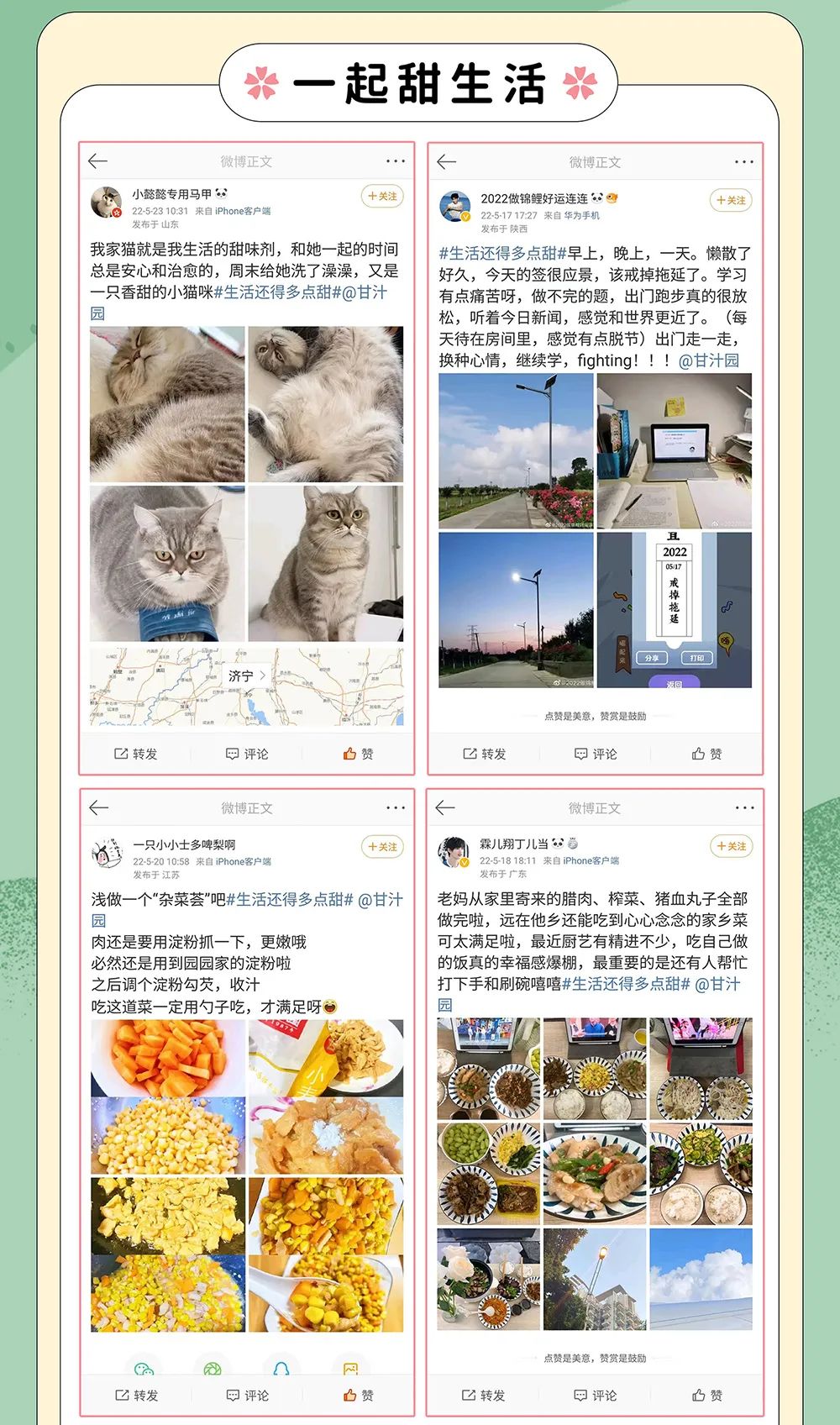 甘汁园5月微博品牌话题营销,#生活还得多点甜#主题活动圆满收官。网友在线分享生活中那些甜故事,将甘汁园一直以来“创造优质好糖,分享甜美生活”的使命充分展现。