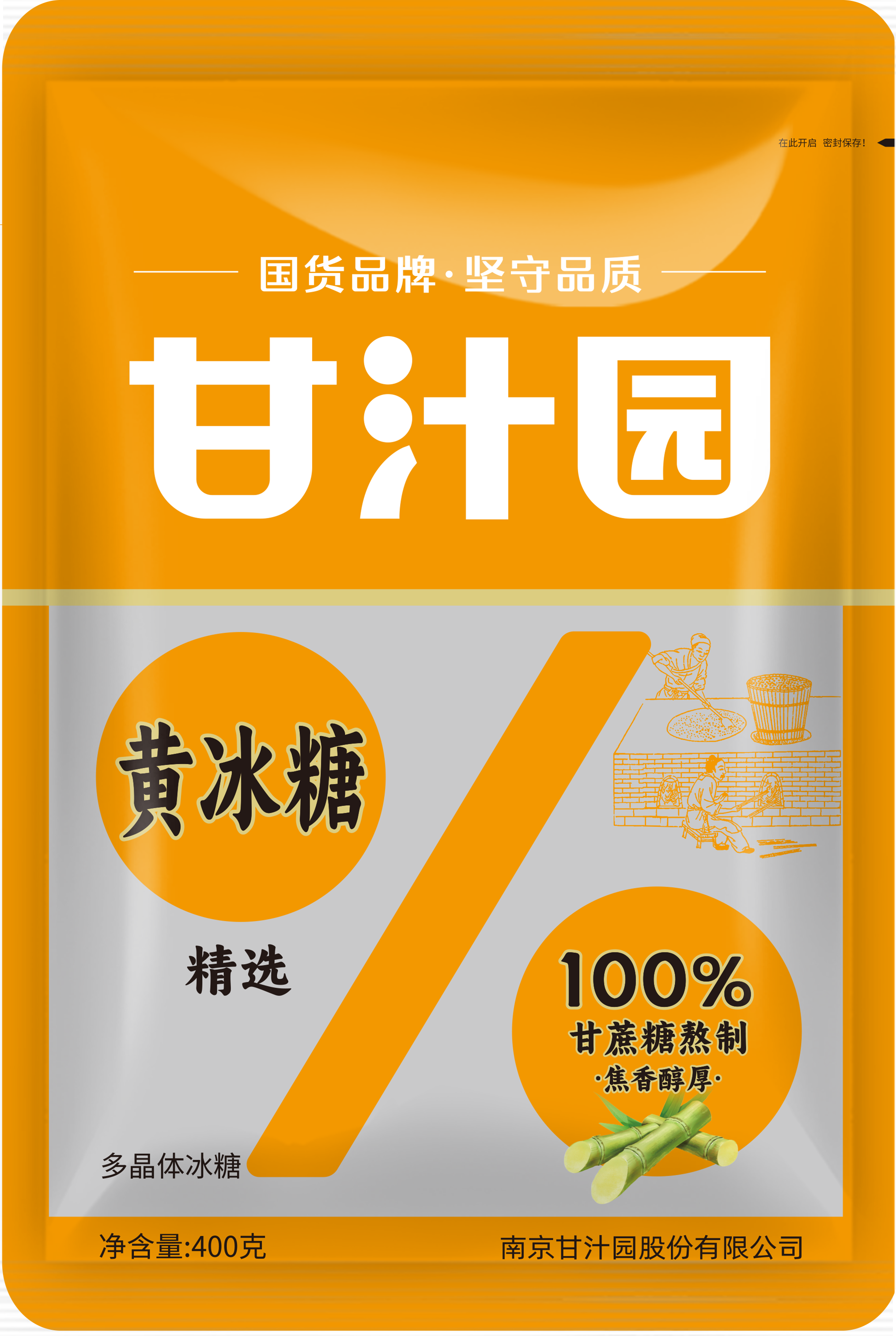 描描述述甘汁园老土冰糖、黄冰糖系列传承古法煮糖工艺,经过化糖、过滤、浓缩、养晶、沥浆、烤糖等十道工序,历经十天时长,匠心熬制,焦香味浓郁,浆汁绵绸。