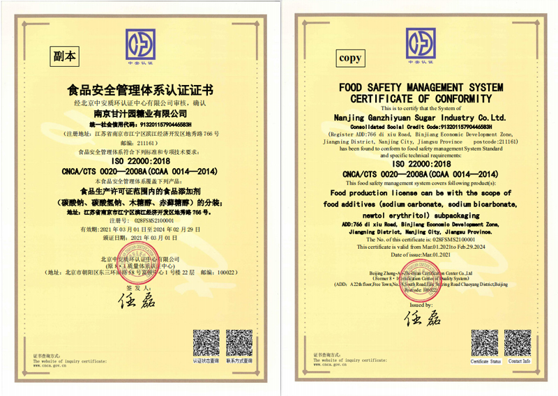 近日,中国食糖行业著名品牌甘汁园顺利完成了ISO 22000:2018食品安全升级认证,