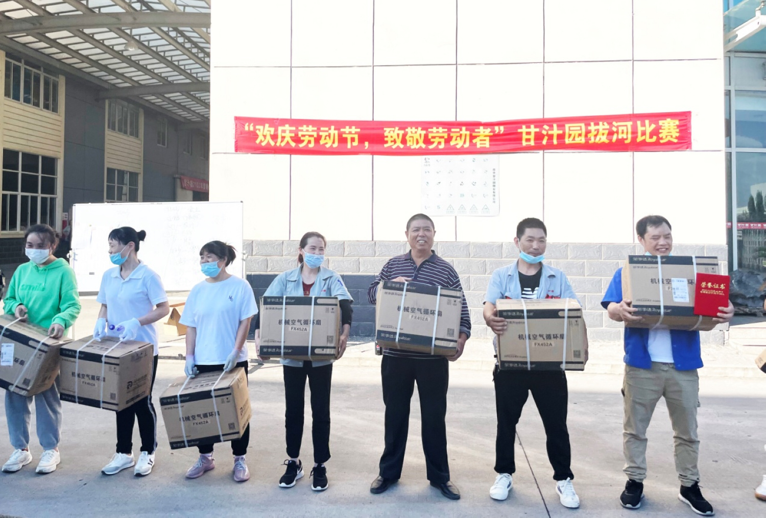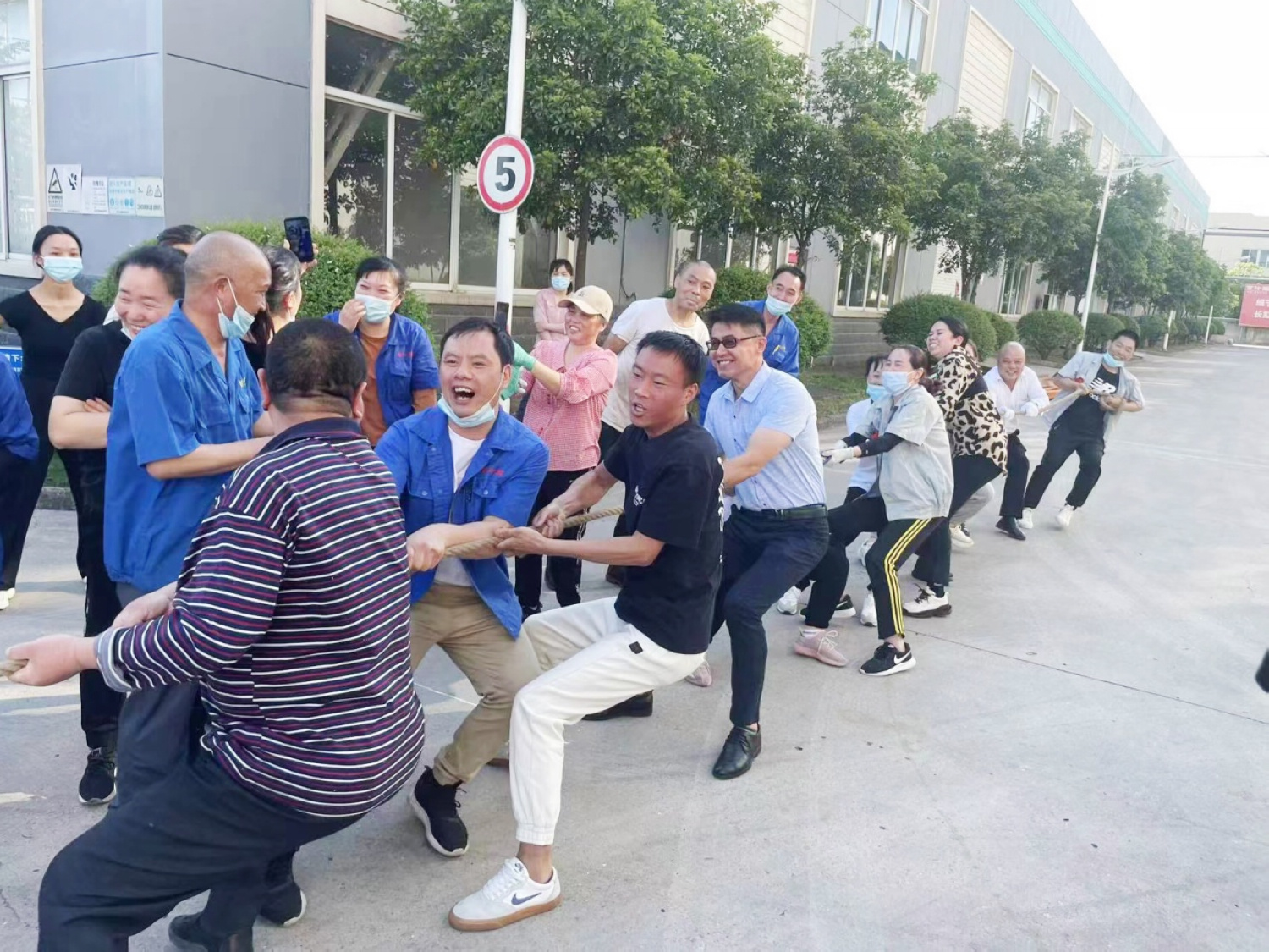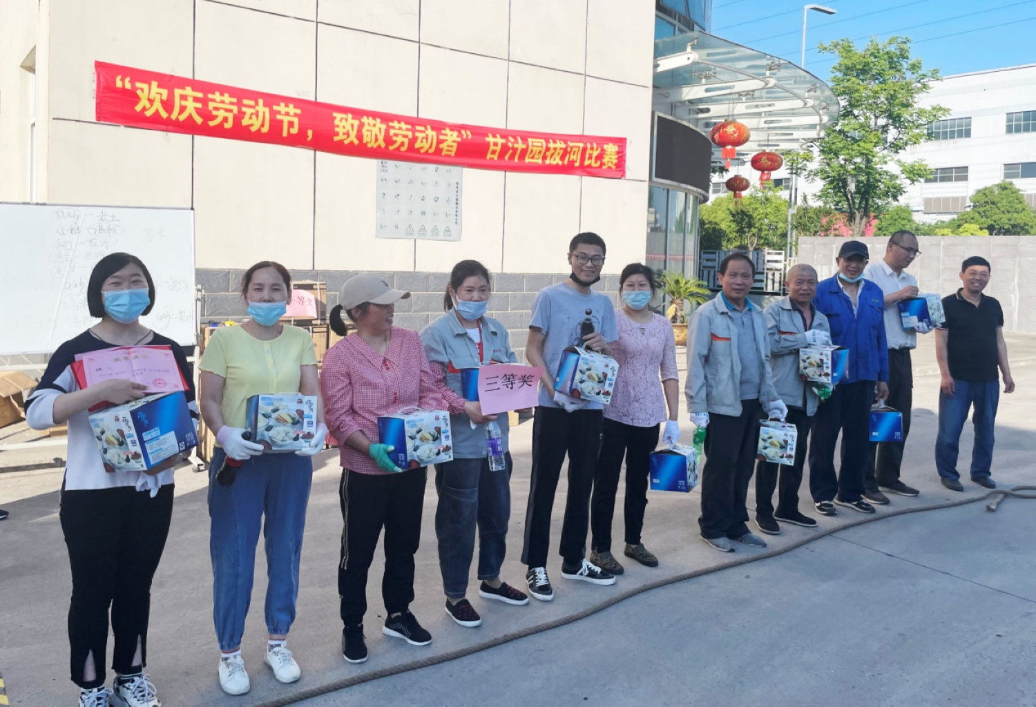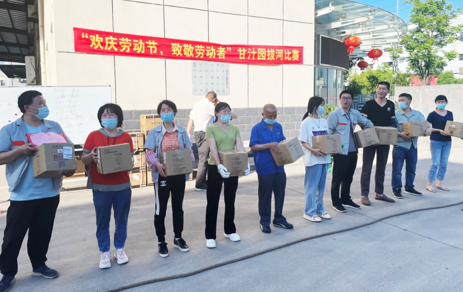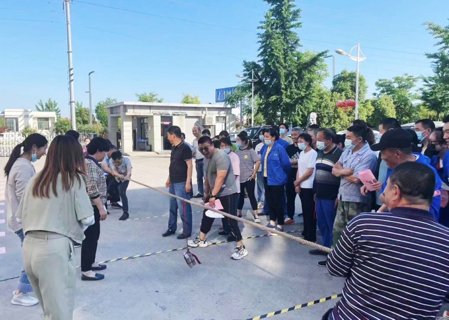 5月6日,由公司工会组织的“欢庆劳动节,致敬劳动者”拔河比赛在总部举行。