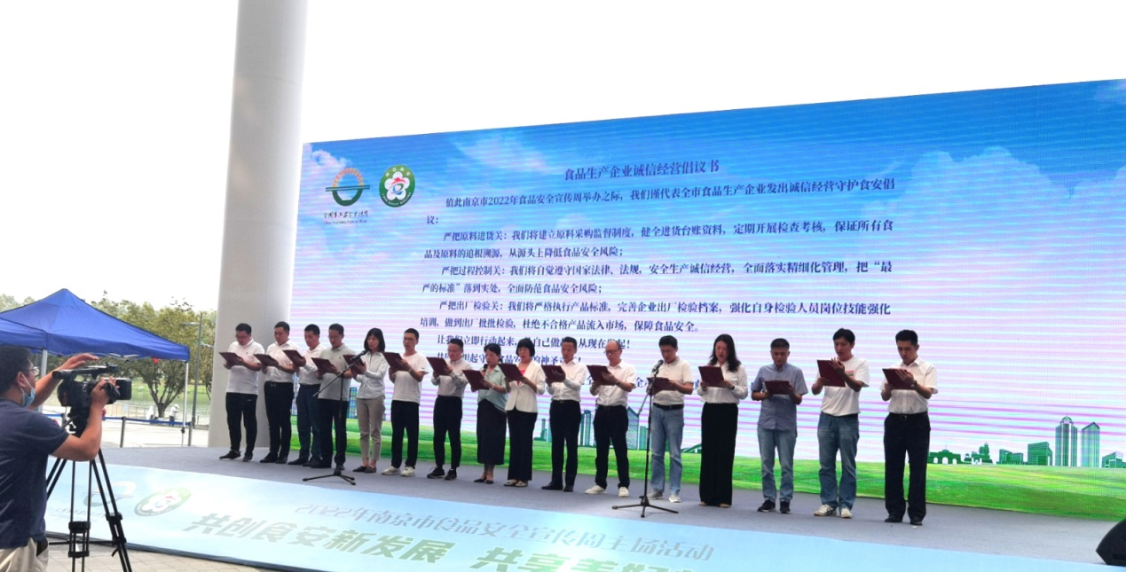 市食品安全宣传周启动,甘汁园等15家食企代表宣读承诺书
